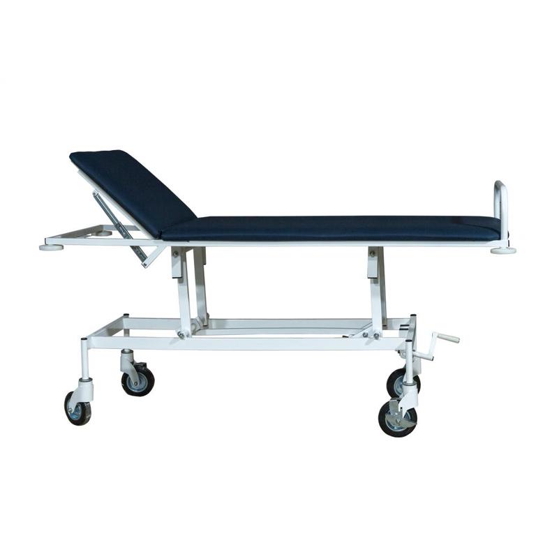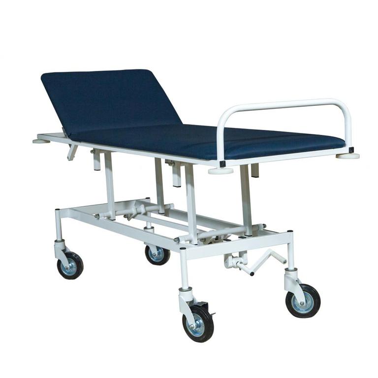 Тележка имеет речную регулировку высоты ложа путем вращения ручки. Подголовник регулируется вручную. Тележка имеет удобную ручку для перемещения и угловые резиновые бамперы, предохраняющие от ударов.