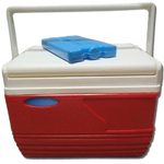 Термоконтейнер предназначен для поддержания оптимального температурного режима при хранении и транспортировке температуро-чувствительных субстанций; снабжается комплектом хладоэлементов (синонимы: хладогены, аккумуляторы холода; представляют собой пластмассовые пакеты или коробочки-брикеты, заполненные теплоемким солевым раствором, либо полимерные пакеты, заполненные теплоемким гелем – тип «гибкий лед»). Перед помещением в термоконтейнер хладоэлементы выдерживают 8-10 часов в морозильной камере стационарного бытового холодильника. При использовании единой технологии изготовления и одинаковых материалов большие термоконтейнеры одной марки сохраняют температуру дольше, чем маленькие. Таким образом, термоконтейнеры могут использоваться как сумки-холодильники и как контейнеры для транспортировки. Устойчивы к дезинфекции стандартными методами. Сохраняет пониженную температуру в течение суток при умеренных окружающих температурах.