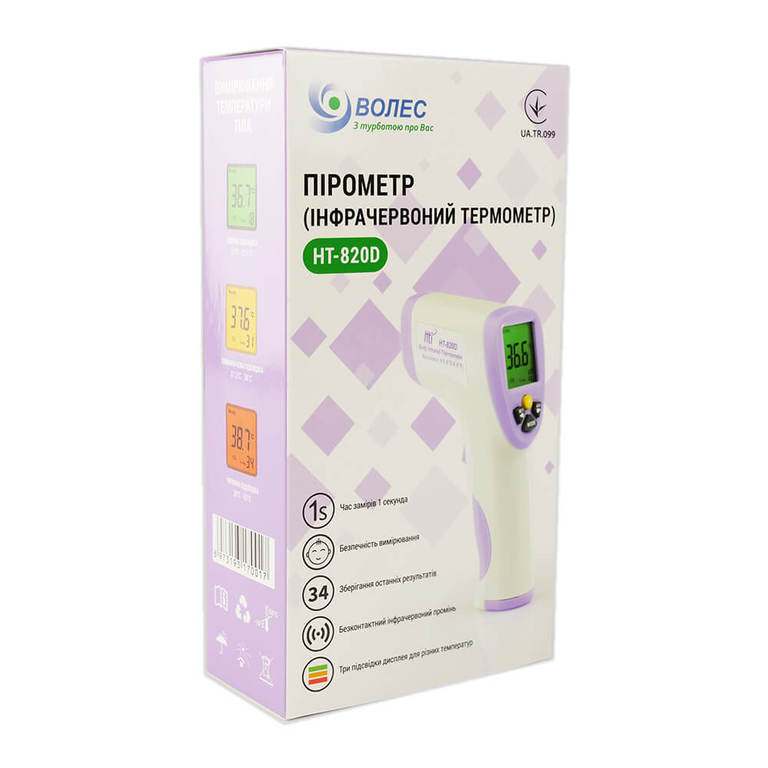 Прибор прост в использовании, имеет автоматическое удержание показаний, запоминает 32 последних измерения. Идеально подходит для предварительного измерения температуры в медицинский учреждениях, школах, университетах, заведениях общественного питания, супермаркетах, торговых центрах и других общественных местах.