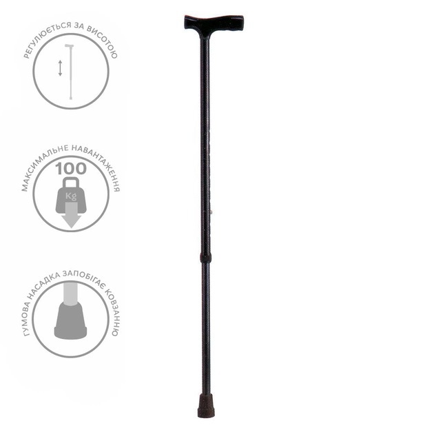 Трость Ridni Опора KJT914С черного цвета выполнена из легкого металла алюминия. Является индивидуальным средством реабилитации и передвижения при нарушении функций нижних конечностей для:
