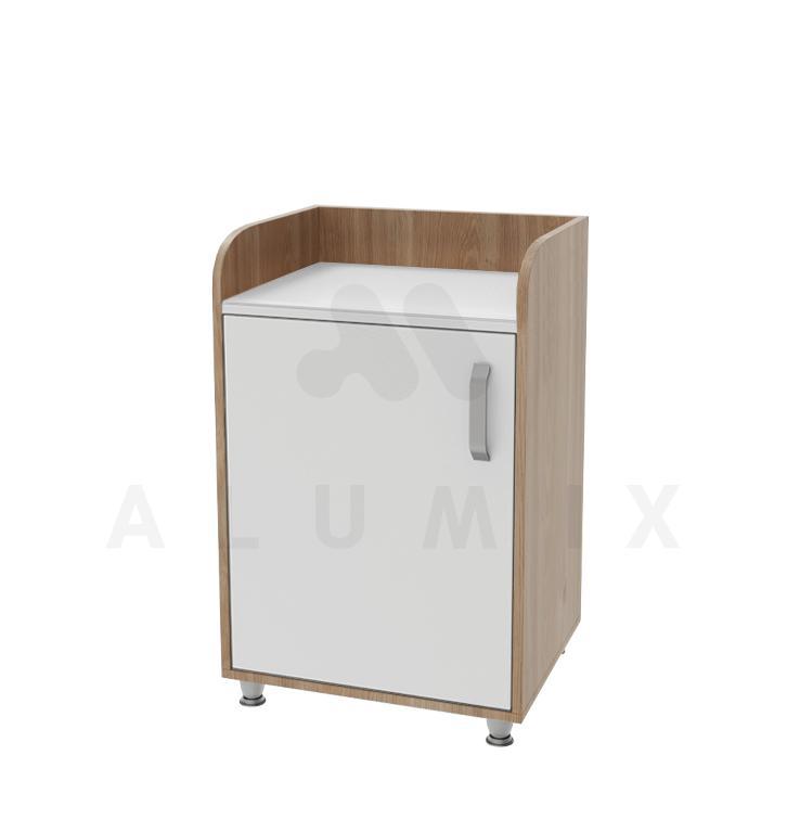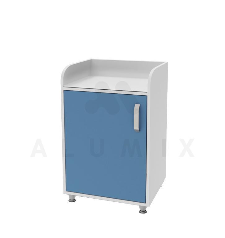 - Удобство и практичность: Тумба оснащена вместительным отделением со съемной полкой, скрытой за дверцей, что позволяет легко разместить личные вещи больного или соответствующие по размеру медицинские приборы и предметы.
