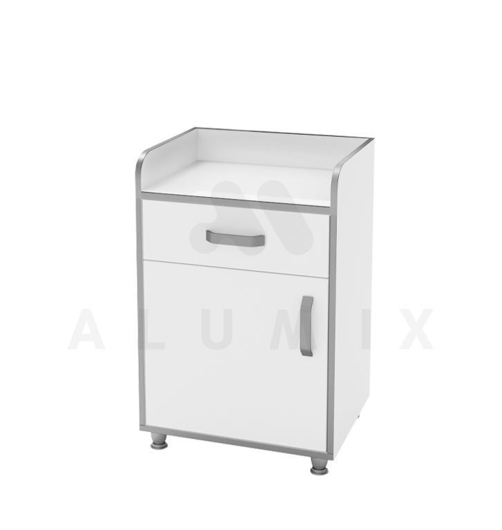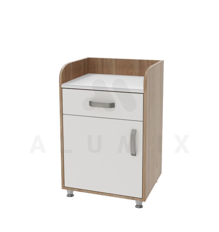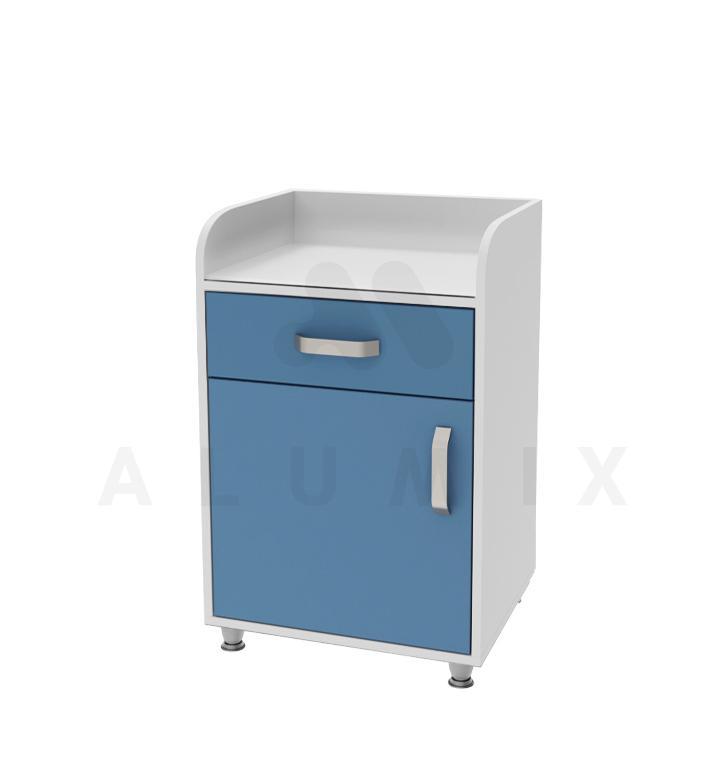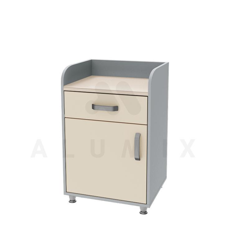 - Оптимальное внутреннее пространство: Тумба оснащена вместительным отделением со съемной полкой, что позволяет удобно размещать личные вещи пациента, медицинские приборы и другие необходимые предметы. Кроме того, верхняя часть изделия имеет выдвижной ящик для удобного хранения дополнительных вещей.