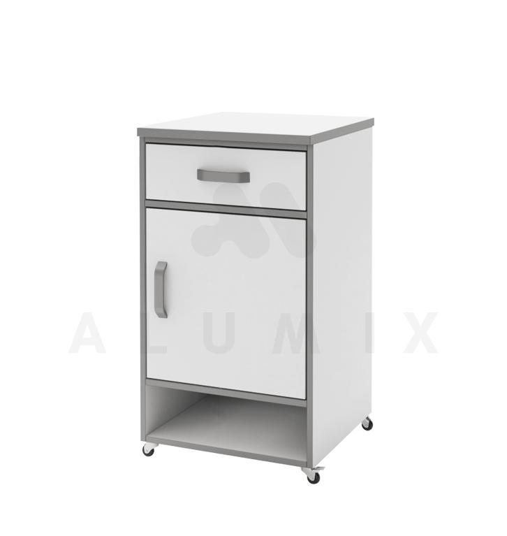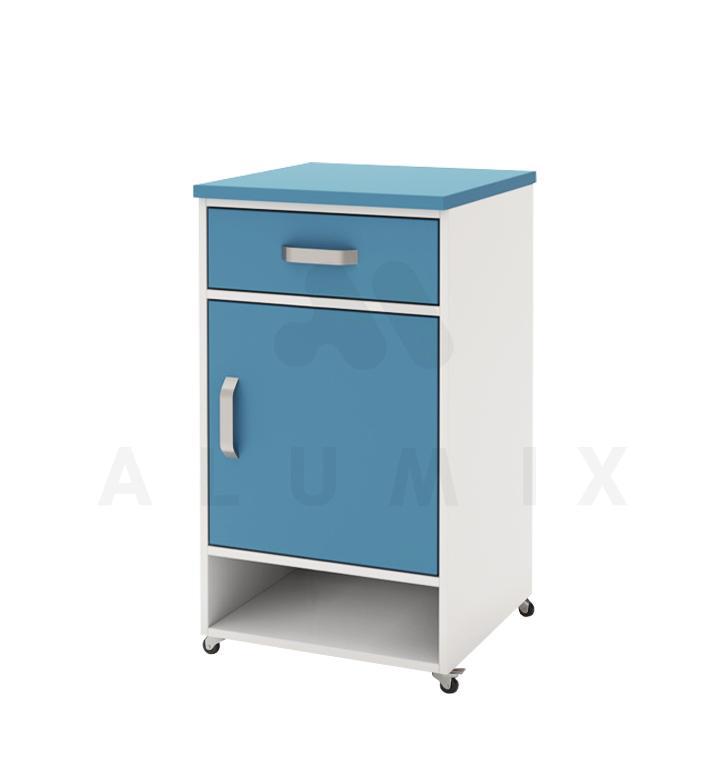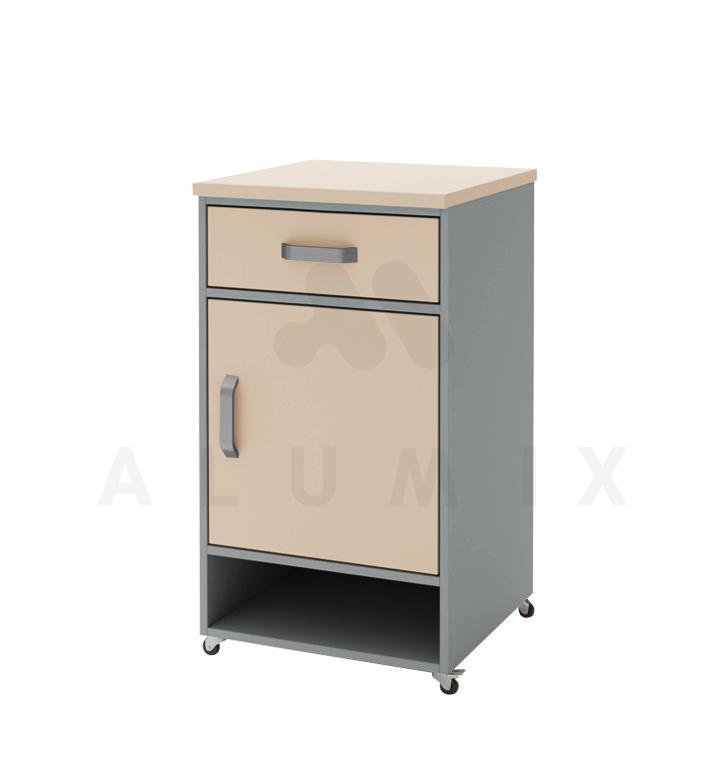 - Вместительное отделение со съемной полкой: тумба оснащена вместительным отделением со съемной полкой, скрытой за дверцей. Это позволяет удобно размещать личные вещи пациента, а также подходящие по размеру медицинские приборы и предметы.