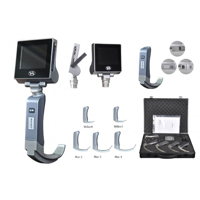 Видеоларингоскоп HYHJ-KC – исключительно надежное и полностью современное функциональное электронное устройство для интубации. Он обеспечивает систему визуализации с цифровой камеры высокой четкости с 3-дюймовым цветным TFT-дисплеем, что обеспечивает восстановление изображения с высоким разрешением. Видеоларингоскоп модель HYHJ-KC имеет 5 многоразовых металлических клинков разных размеров в соответствии со строением полости рта у разных людей.
