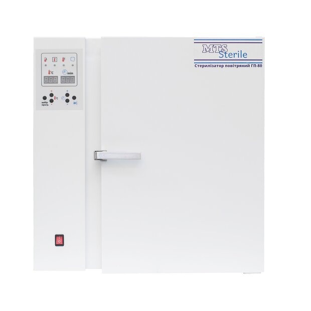 Воздушный стерилизатор ГП-80 — профессиональное оборудование для сушки, дезинфекции и стерилизации сухим горячим воздухом медицинских, стоматологических, косметологических и маникюрных инструментов, насадок и стеклянной посуды. Сухой горячий воздух равномерно воздействует на всю поверхность инструмента, предотвращая коррозию металла и эрозию стекла. Прибор имеет автоматическую систему управления: на панели отображаются текущая температура, этапы цикла и время стерилизации. Камера и лотки изготовлены из жаропрочной нержавеющей стали. Полезный объём камеры — 80 л. В комплекте 6 лотков размером 318×434×27 мм.