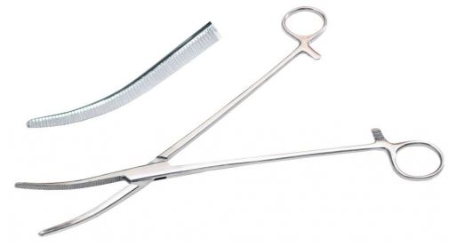 Зажим Бильрот кровоостанавливающий по Overholt-Geissendoerfer зубчатый изогнутый № 3.