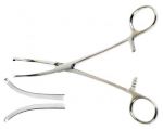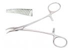 Зажим Федорова для почечной ножки, изогнутый по радиусу №1 Малый. Зажим предназначен для пережатия кровеносных сосудов и тканей в глубине таза.