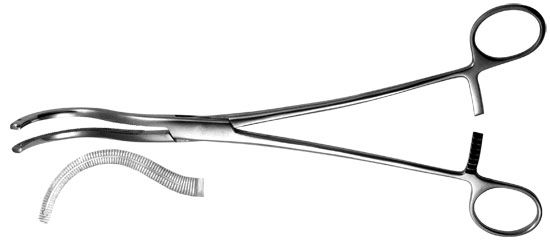 Зажим Федорова для почечной ножки, изогнутый по радиусу №2 Малый. Зажим предназначен для пережатия кровеносных сосудов и тканей в глубине таза.