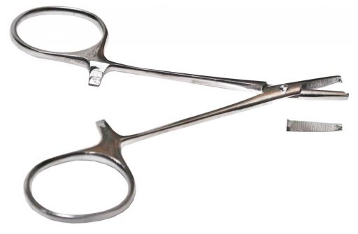 Зажим кровоостанавливающий, глазной, прямой одно- двузубый, 84 мм. Длина рабочей части 12 мм. Инструмент предназначен для глазных амбулаторных операций.