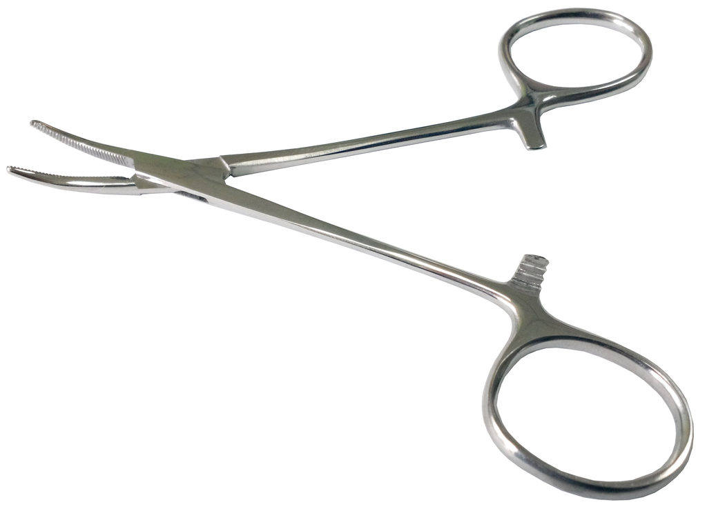 Зажим Москит, изогнутый для новорожденных, 125мм. Длина рабочей части 20 мм. Инструмент предназначен для гемостаза небольших сосудов при нейрохирургических операциях и в детской практике.