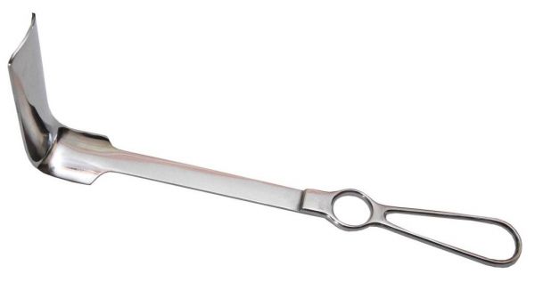 Зеркало подъемник влагалищное желобоватое по Кохеру № 3. Длина рабочей части 115 мм, ширина 40 мм. Инструмент предназначен для подъема передней стенки влагалища.